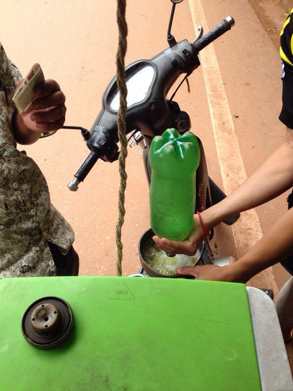 In realtà, sono dei benzinai fai da te, probabilmente più economici, dove spesso si riforniscono i Tuk tuk per fare il pieno delle loro moto
