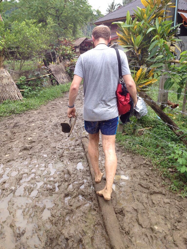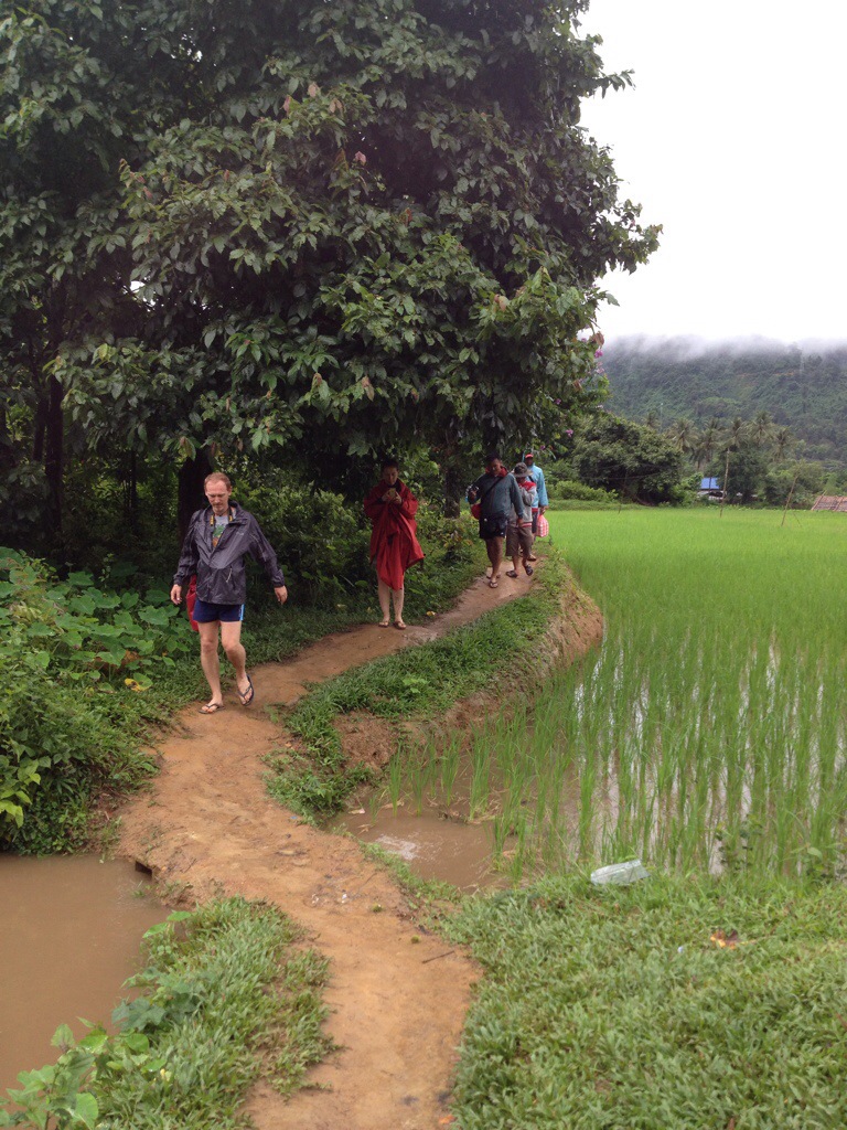 E così mentre camminavamo in mezzo alle piantagioni di riso, decisamente paludose, sentivano ripetere "hi-ciao-sabaidee" "Thank you-grazie-khawp jai" con il risultato di un super lezione di laos-italiano!