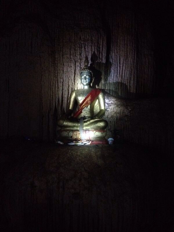 proseguendo nella grotta successiva, Tham Loup, siamo stati portati all'interno della cavità dove tra stalattiti e rocce calcaree siamo diventati quasi degli equilibristi speleologi in infradito e dotati di frontalino.