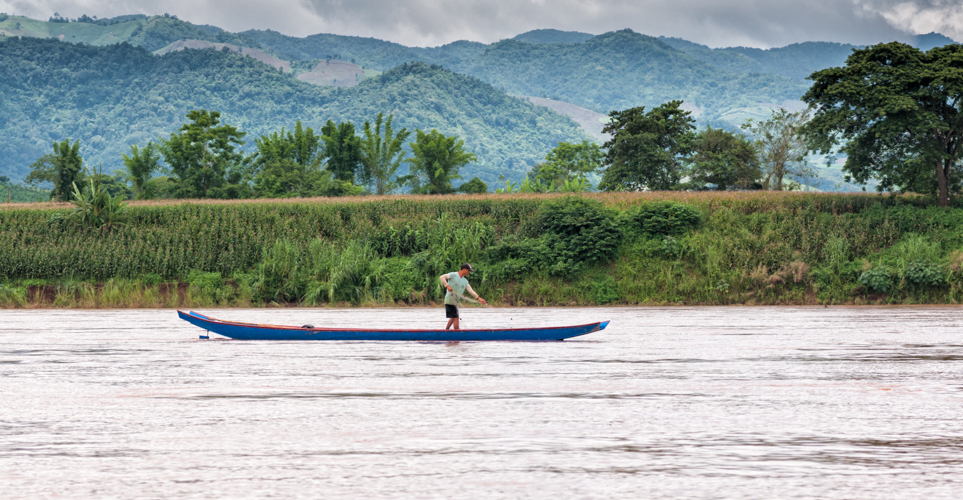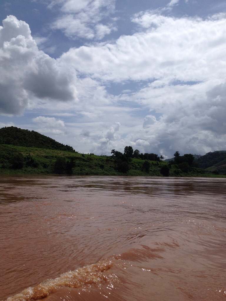 Con lentezza iniziamo ad assaporare il paesaggio laotiano, rigoglioso e di colore verde intenso, solcato da una lingua scura e torbida, il Mekong
