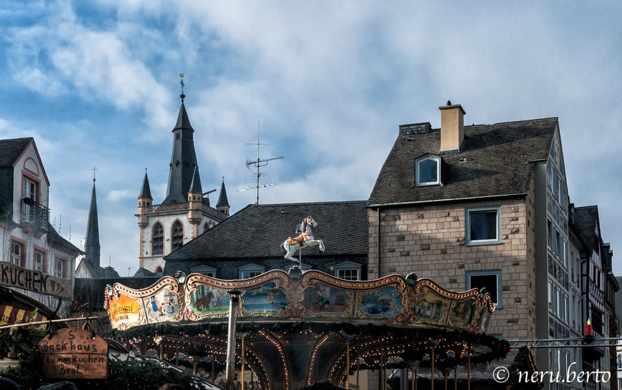 Un'altra meta da non perdere è Trier! Cittadina di confine a solo 15 km dal Lussemburgo, si respira aria tedesca e francese in un mix davvero accattivante! La piazza centrale, occupata dai mercatini, presenta delle case in puro stile tedesco mentre passeggiando nei dintorni si trovano palazzi più moderni dove è possibile sbizzarrirsi con fotografie di linee e riflessi! Qui abbiamo assaggiato uno dei migliori Bratwurst e patate arrostite con funghi champignon e salsa all'aglio per la gioia di tutti! Delle prelibatezze!!