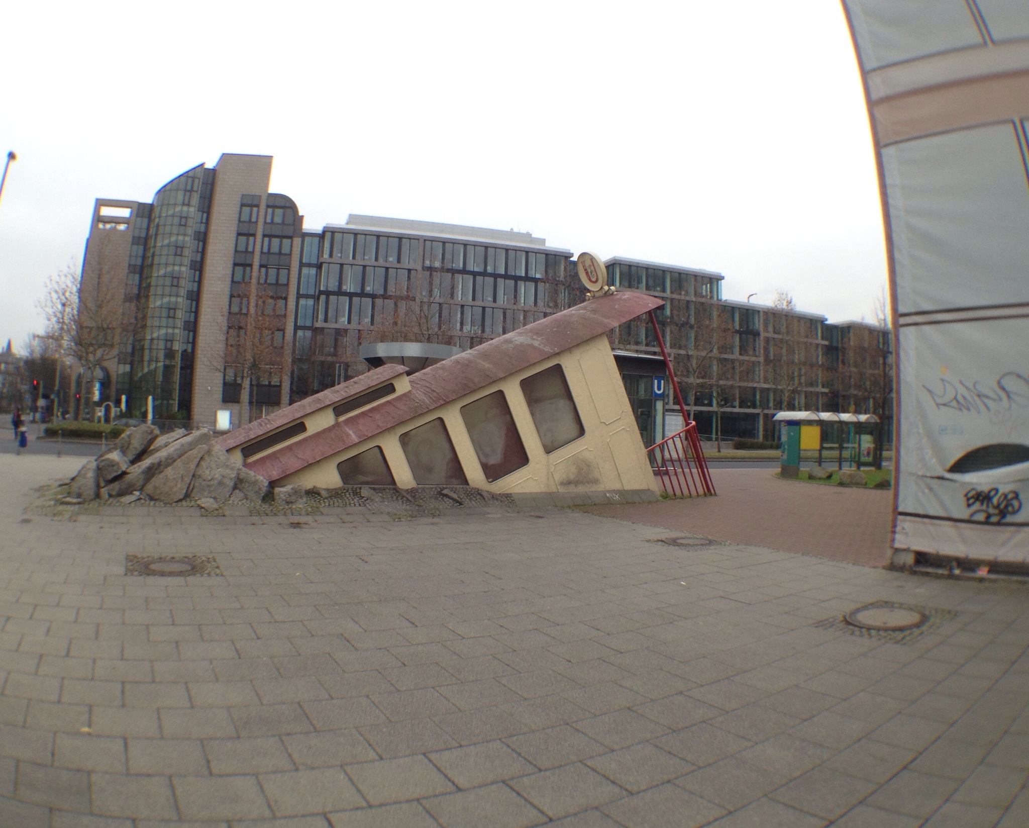 Un vecchio vagone della metro spunta letteralmente dal terreno legandosi per sempre all'asfalto e ponendo vari dubbi sul motivo di un'installazione di questo tipo... Ma dove siamo finiti?