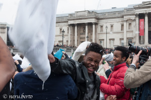 Vi ricordate quando da bambini ci si armava di cuscino e si "colpivano" sorelle o fratelli più piccoli... ecco provate ad immaginare una piazza, per esempio Trafalgar Square a Londra, invasa da ragazzi, bambini e anche adulti, che armati di cuscini saltellano qua e là alla ricerca della cuscinata perfetta.