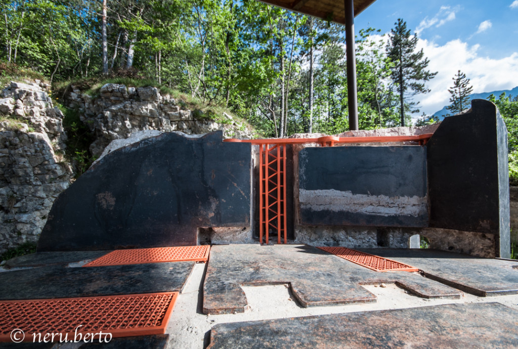 Proseguendo il cammino, dopo aver superato alcune piccole gallerie si arriva al forte vero e proprio dove è possibile accedere e visitare l'interno. Ci si rende conto della maestosità di questa "macchina da guerra" completamente scavata nella roccia. Il lavoro di messa in sicurezza e recupero è stato eseguito utilizzando del materiale di colore arancio, proprio per evidenziare il cantiere di un tempo che non era stato ultimato.