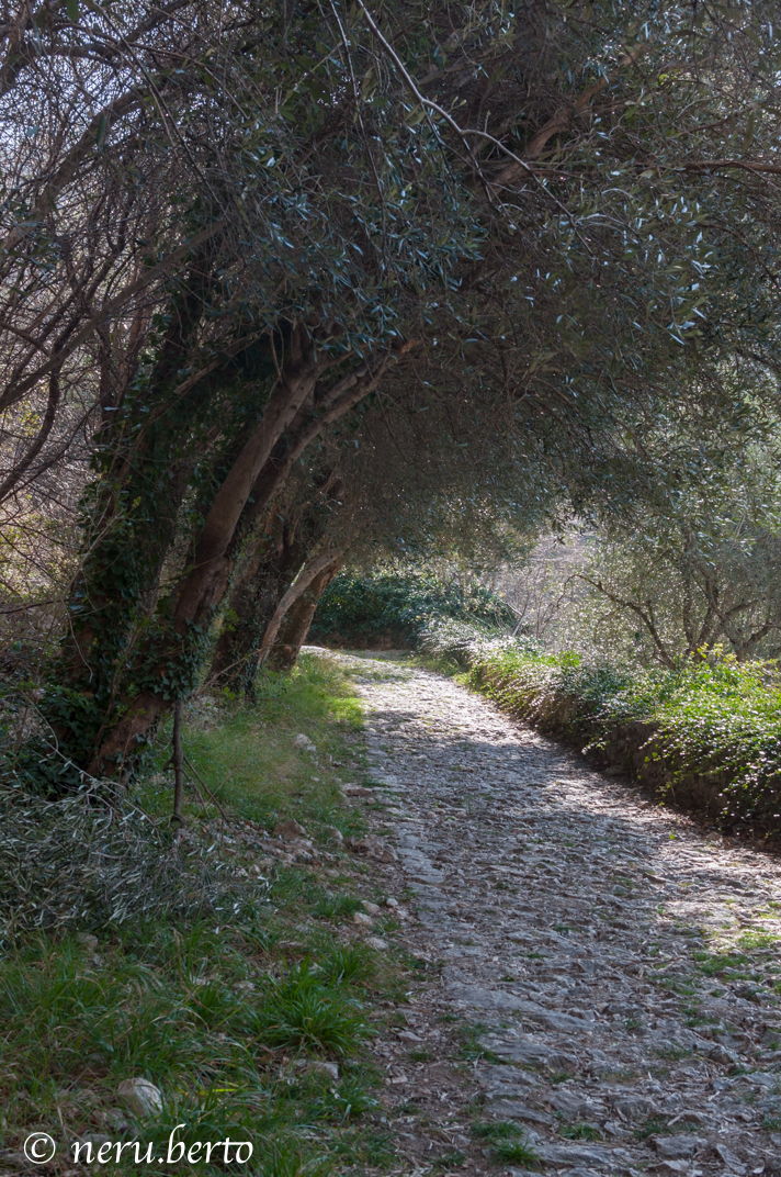 Passeggiando lungo la strada fatta di ciottoli e circondata da ulivi, si inizia a scorgere il Lago di Garda, che incastonato tra le montagne rende il paesaggio unico e indimenticabile.